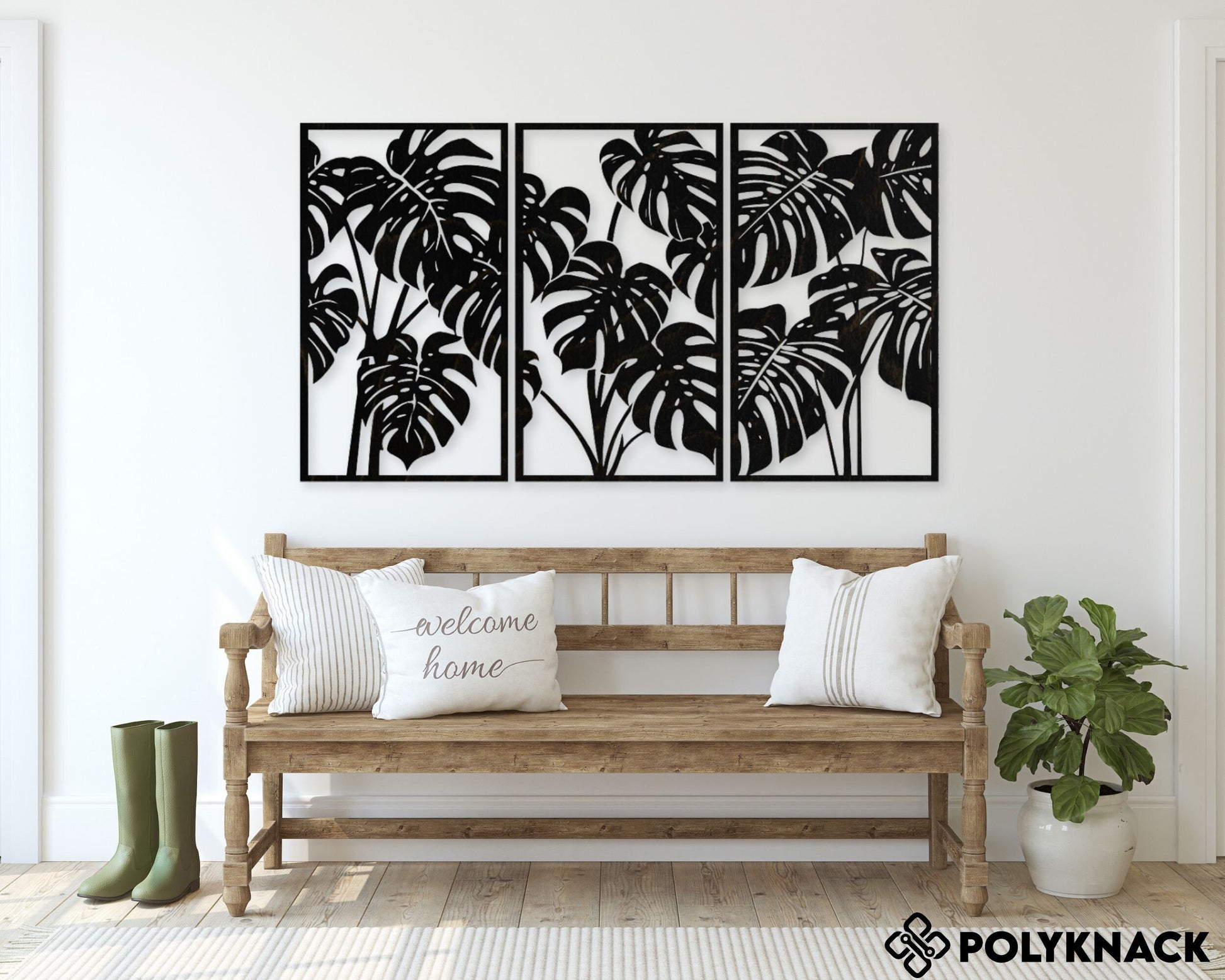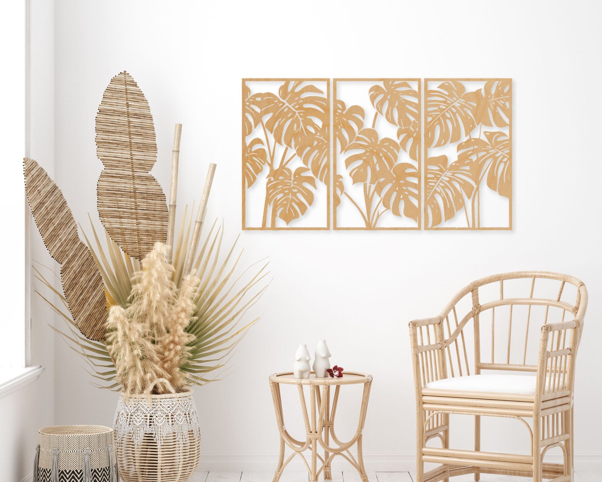 This modern wooden wall art showcases a stunning monstera leaf design, elegantly spread across three panels. This eye-catching wall hanging adds a touch of nature-inspired beauty to your home decor, making it a perfect addition to your bedroom, living room, office, or entryway. Whether displayed over the bed or above the couch, this monstera wall art creates a stylish focal point that enhances any space. With its intricate details and contemporary design, this piece brings a fresh, tropical vibe to your home while maintaining a sleek and modern aesthetic.