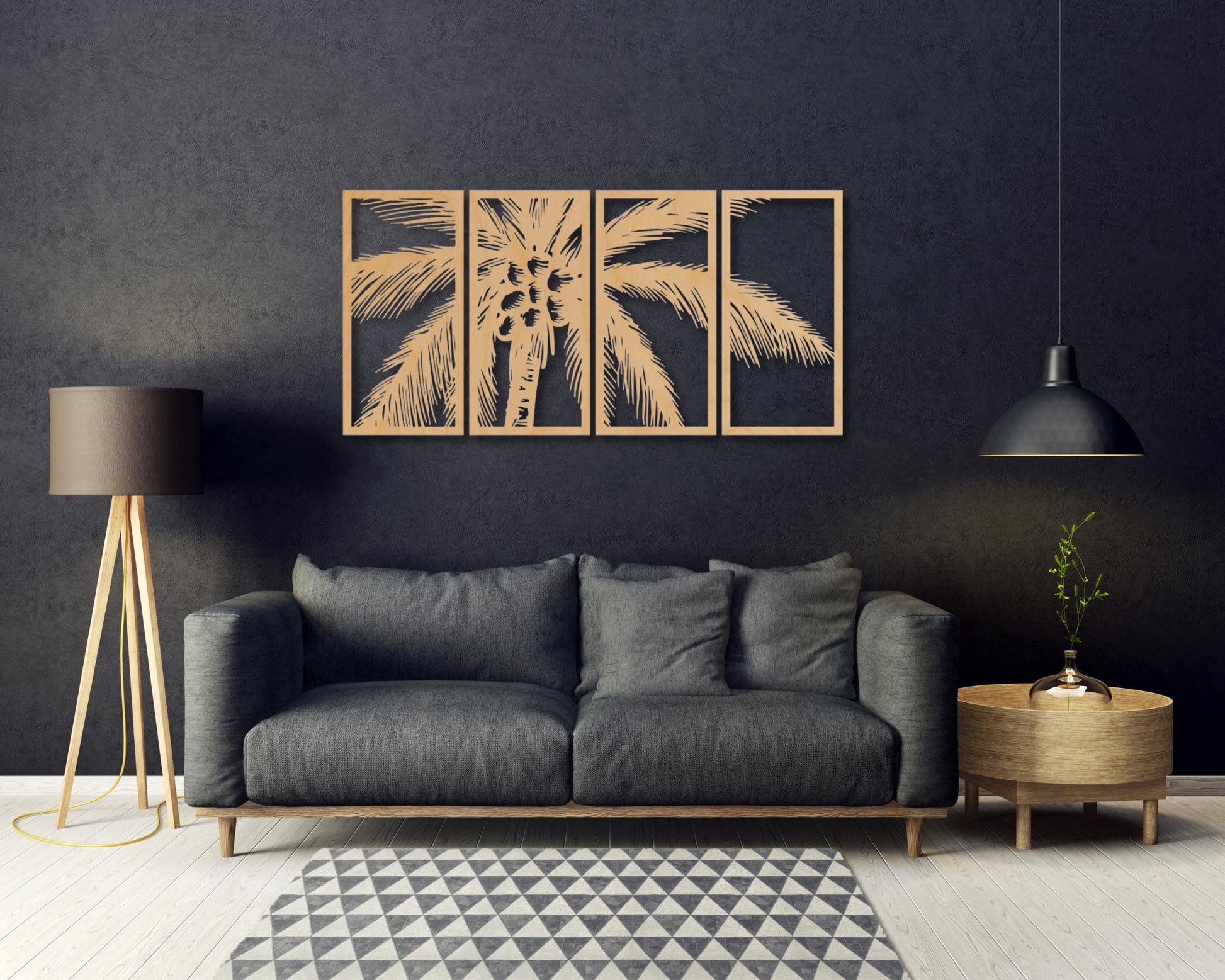 Bring a touch of the tropics into your home with this botanical palm tree wall art, beautifully displayed across four panels. This elegant wall hanging adds a refreshing, nature-inspired element to your home décor, making it perfect for a bedroom, living room, office, or entryway. Arrange it along a staircase for a dynamic display, create a calming retreat in a sunroom, or let it serve as a bold statement piece in a dining area. Whether hung over the bed or above the couch, this multi-panel palm tree design effortlessly enhances your space with a modern and organic feel.